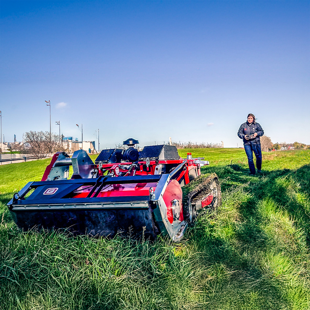 El Gravely Ovis 40 RC fue construido para arrasar cualquier área descontrolada, incluidas pendientes empinadas y zanjas. Construido como un tanque, permite cortar donde las cortadoras de césped tradicionales no podrían. Su bajo centro de gravedad cumple con altas expectativas. Gracias a su potente plataforma de corte tipo desmalezadora, se enfrenta a cualquier tipo de hierba, incluso tallos altos y gruesos. Impulsado un control remoto de hasta 1000 pies de distancia, 1,5 pulgadas de diámetro.