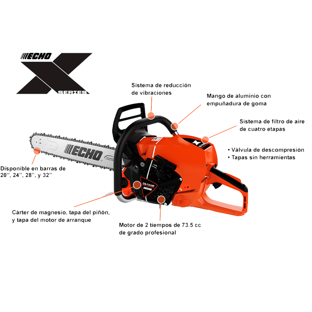 · Ya sea para derribar árboles o cortar grandes volúmenes de madera, la CS-7310P combina potencia, resistencia y confiabilidad para trabajar sin descanso.